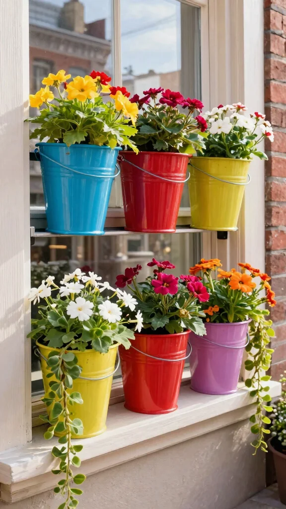 Make sure to drill drainage holes to prevent waterlogging. Personalize your buckets by painting them or adding decorative accents. Combining herbs and flowers in your window boxes will create a fragrant and visually appealing display.
