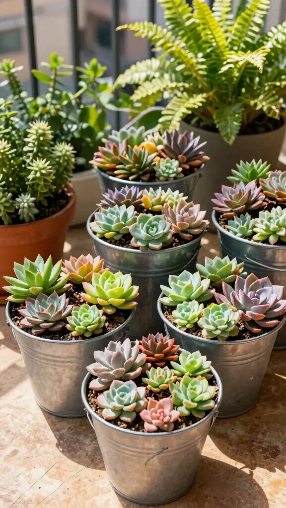 7. Succulent Garden in Buckets