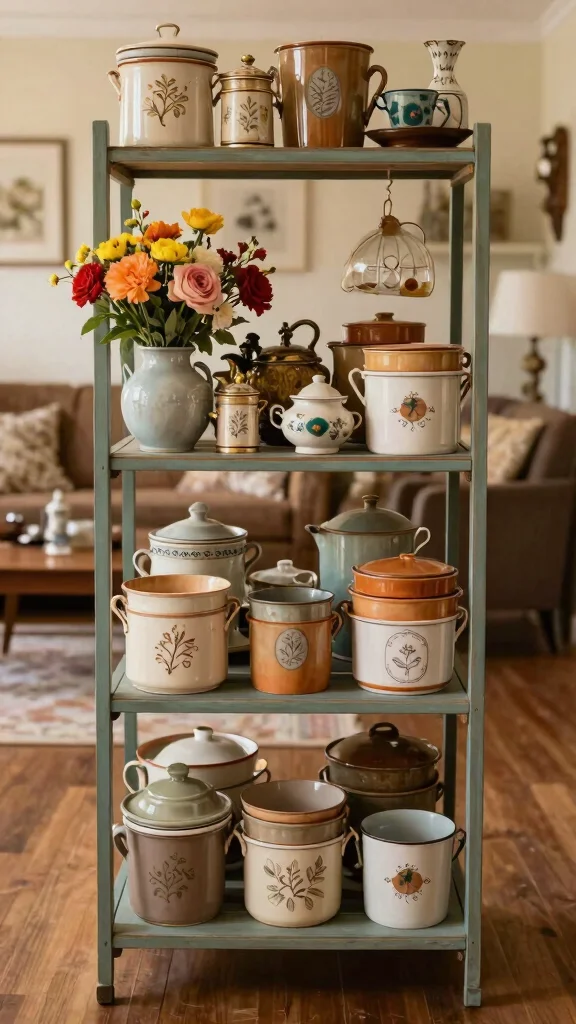For those who adore antiques, styling your baker’s rack with vintage plant pots and decor can create a delightful atmosphere. Mixing various textures and colors adds warmth and charm, inviting conversation and nostalgia into your space.
