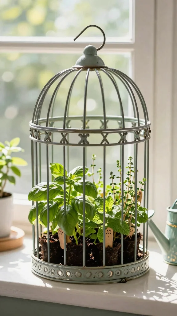Turn a simple bird cage into a thriving herb corner. These bird cage planter ideas merge whimsy with practicality—plant basil, thyme, and mint, then label each herb for easy harvest right from your kitchen window.