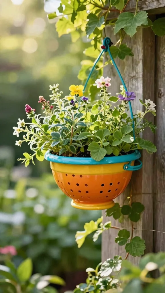 An old colander can be transformed into a charming and functional planter, perfect for herbs or small flowers. Its built-in drainage holes make it an excellent choice, allowing excess water to escape while providing an attractive display. Fill it with potting soil and your favorite plants to create a unique centerpiece for your kitchen or patio. A colorful vintage colander adds a retro vibe that enhances your garden’s character.
