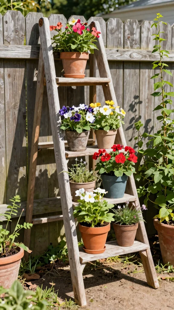 Repurposing items can be a game-changer. Turn wooden crates or ladder sections into garden plant stand displays, or hang shoe organizers to create vertical pockets for small pots—perfect vertical garden solutions on a budget.