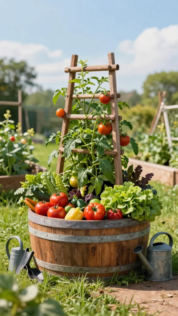 Mixing colors and textures can be a feast for the eyes. Try pairing bright bell peppers with dark green kale for a stunning visual contrast. For those climbing varieties like cucumbers, adding a trellis in the center turns your barrel into a charming vertical garden, maximizing your space while adding whimsy.