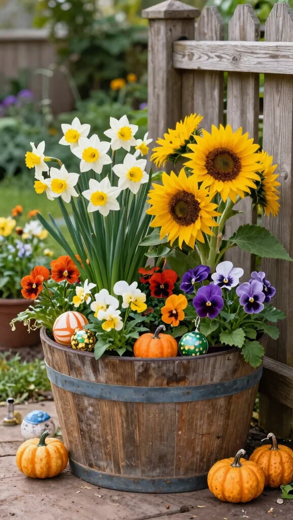 Your half barrels can become a fabulous canvas, turning gardening into a delightful art project!