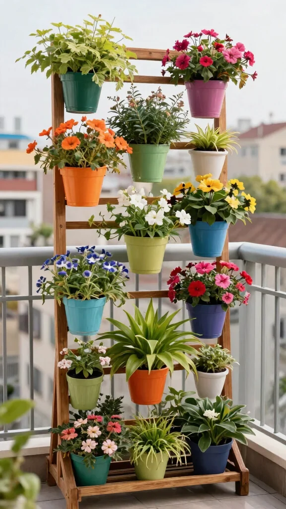 A ladder planter adds height and artistic flair to your garden, making it a delightful focal point on your balcony!