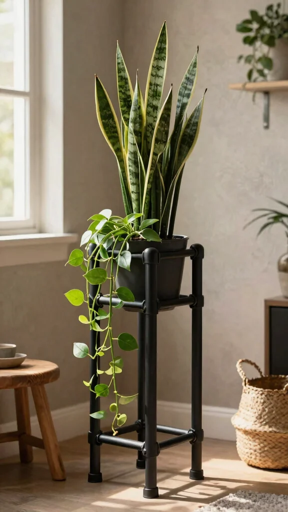 If you love an edgy aesthetic, an industrial pipe plant stand can be a bold addition to your home. Crafted from durable metal pipes, these stands offer a rustic charm that pairs beautifully with lush greenery. Choose a design that accommodates multiple plants or embrace a minimalist approach with a single pot.