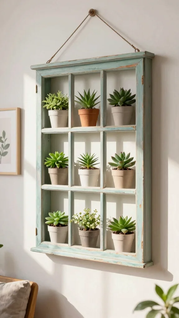 Repurposed window frames not only serve as beautiful plant holders but also tell a story, making your home feel even more personal.