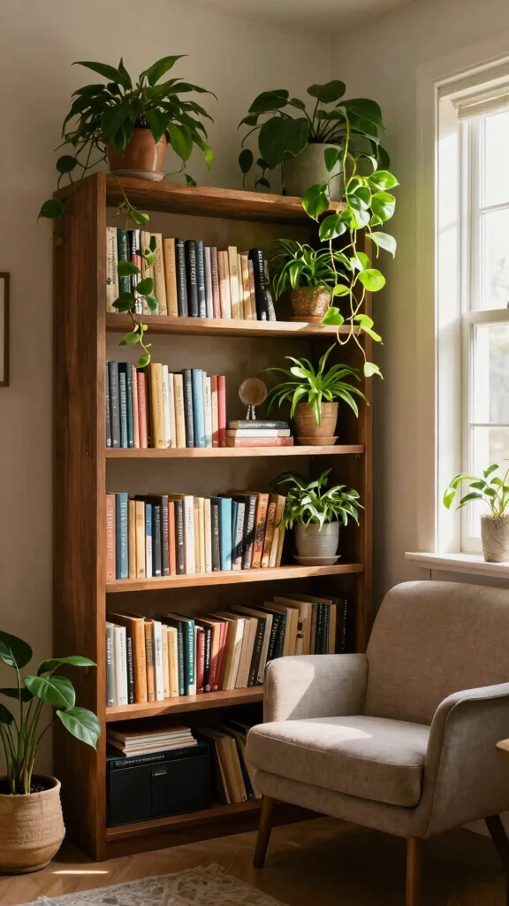 This arrangement breathes life into your reading area, making it a welcoming sanctuary. The mix of books and plants fosters a peaceful environment perfect for relaxation.