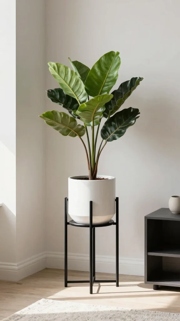 For those who appreciate a clean, modern look, a minimalist plant stand is an ideal choice. These stands emphasize simplicity and functionality, allowing your plants to be the main attraction. Opt for a design made from sleek metal or wood with clean lines in a neutral palette. This style works beautifully with large leafy plants or elegant orchids, which can create a stunning visual impact.