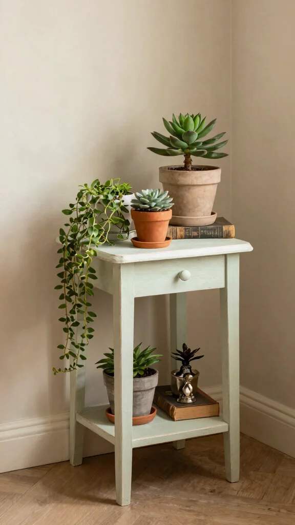 Transform old furniture pieces into unique plant stands for added character and sustainability in your indoor space.