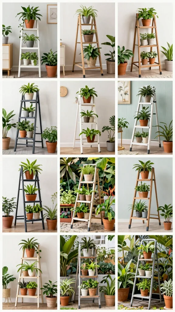 Fun fact: a single multi-tier ladder plant stand can hold 9–12 plants across four levels. Mixing large and small pots creates a cascading, layered garden effect that’s both practical and eye-catching. Keep a consistent color palette for harmony and watch your space transform.
