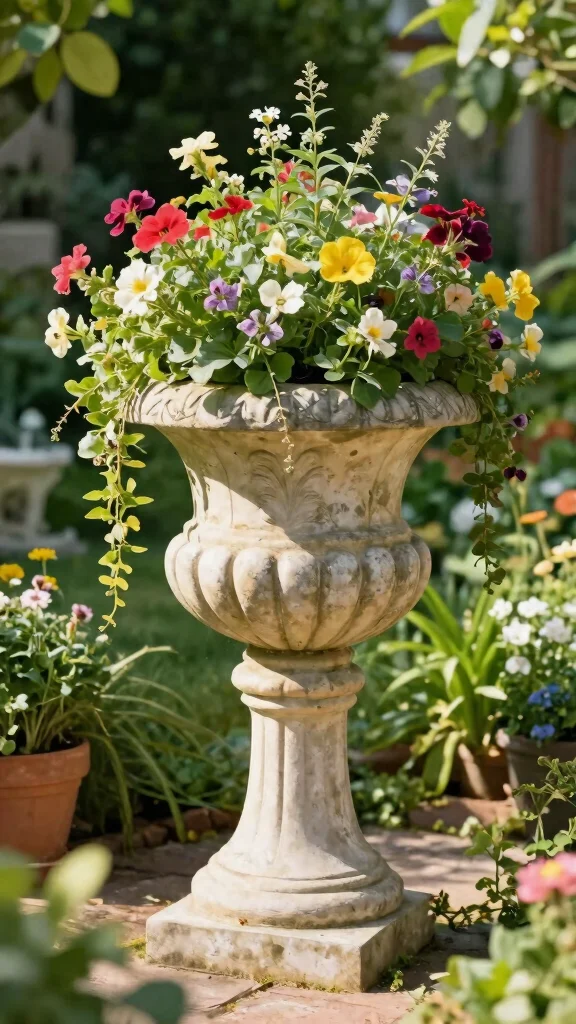 Garden column planters are an excellent way to add vertical height and charm to your patio. These tall planters provide ample space for multiple plants, creating a stunning focal point that draws the eye. Envision a column planter filled with vibrant flowers and lush greens, making a bold statement in your outdoor area.