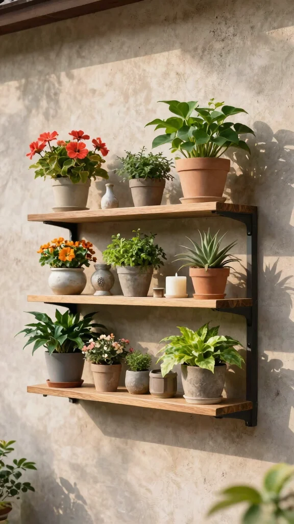 Wall-mounted plant shelves are a clever solution for maximizing space while showcasing your favorite plants. They introduce a modern flair to your outdoor area, allowing you to utilize vertical wall space effectively. Imagine a series of shelves at varying heights, each adorned with a unique plant that creates a stunning visual tapestry.