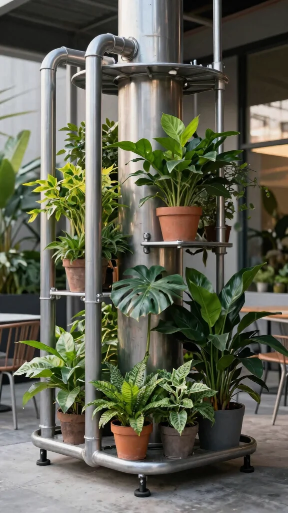 Industrial Pipe Plant Stand Metal pipes Modern aesthetic Combine with wooden accents
