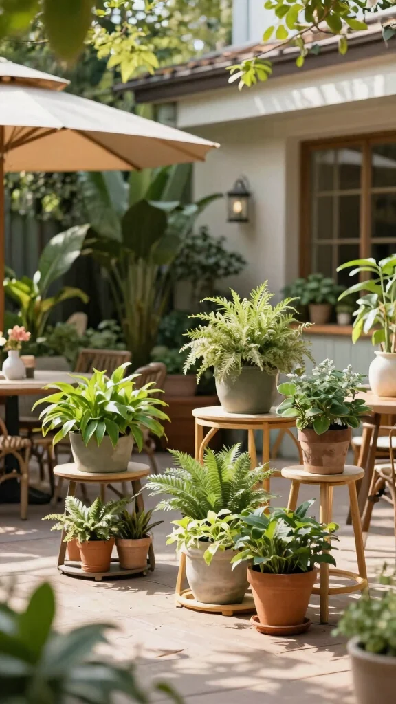 Use vertical garden ideas and DIY plant stands to maximize height without crowding your patio.
