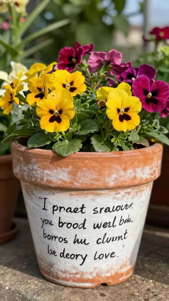 Add a personal touch to your garden by incorporating inspiring quotes or phrases on your flower pots! This creative idea combines artistry with motivation, making your garden not just beautiful but also uplifting.
