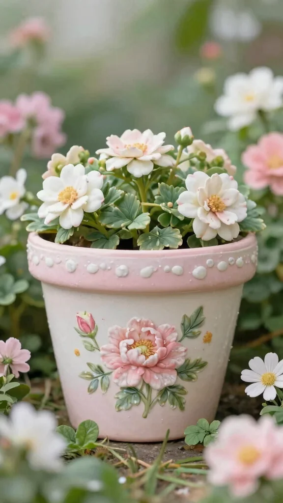 Embrace vintage elegance with flower pots adorned in delicate floral designs reminiscent of classic porcelain. Soft pastels and intricate patterns evoke a timeless charm, perfect for those who appreciate a romantic garden aesthetic.