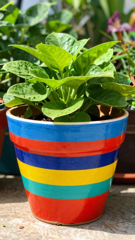 Bold stripes can transform a simple flower pot into a vibrant focal point! Alternating colors in vertical or horizontal lines adds a playful and modern vibe to your gardening.
