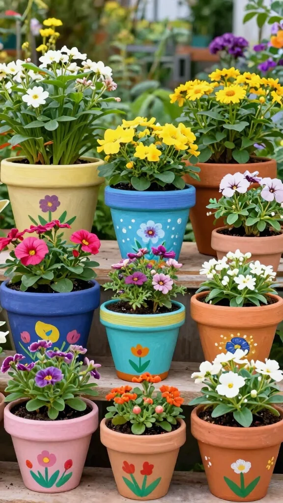 What are some beginner-friendly creative planter ideas using painted pots?
