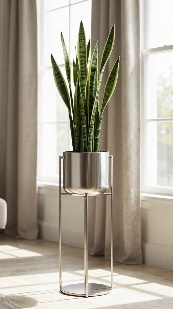 Fun fact: Elevating a plant on a sleek metal pedestal stand can boost its visual impact by 40% in small spaces. People notice eye-level greenery first, and the modern shine adds a contemporary flair that ties your decor together.