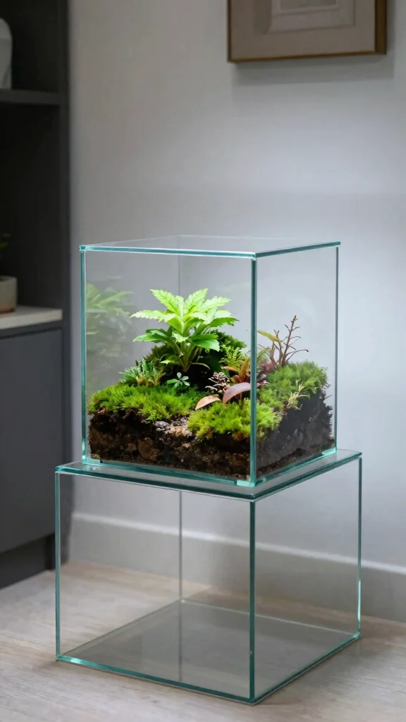 A glass stand elevates your decor by highlighting your plants while adding a modern touch that feels both fresh and inviting.
