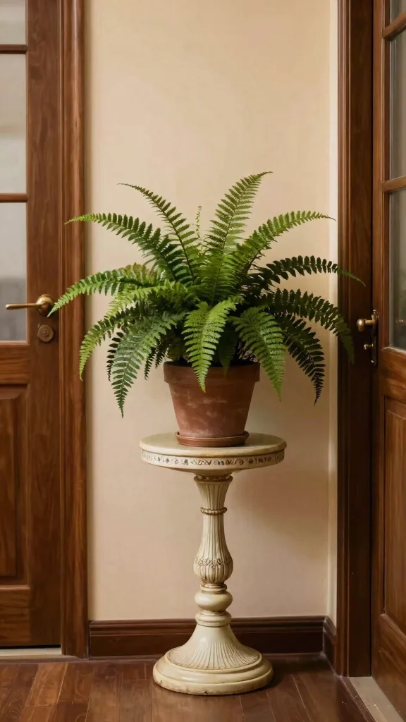 A vintage-inspired pedestal plant stand isn’t just furniture—it’s a small stage for your greenery. Pair roses or ferns with iron or aged wood to bring nostalgia and warmth into hallways or entryways.
