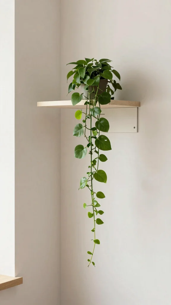 If you’re looking to save floor space, a minimalist floating pedestal stand is an excellent choice! Mounted on the wall, these stands create a stunning display that showcases your favorite plants while keeping your floor area clear. They work particularly well with trailing plants, giving the illusion that they are floating in mid-air and adding to the overall aesthetic.