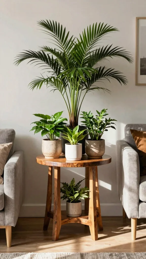 Using accent tables as plant stands brings a chic, eclectic touch to your living room while enhancing your connection to nature.