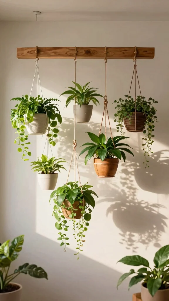 Creating a hanging plant stand from an old wooden beam introduces dramatic flair to your space while conserving floor area. This project allows your plants to dangle gracefully, enhancing your indoor garden feel.