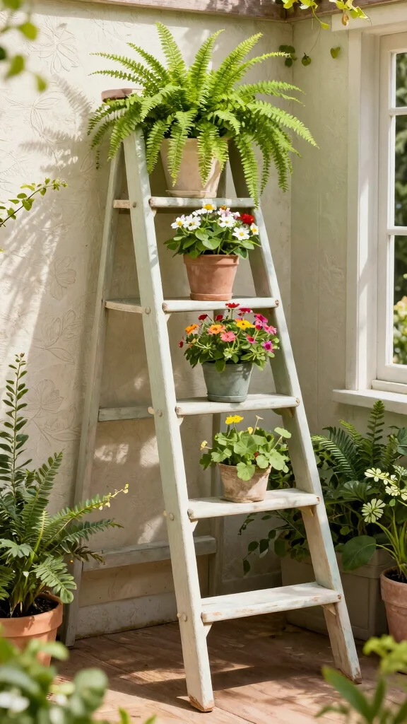This vintage ladder not only revitalizes an old piece but also brings personality and charm to your plant display.