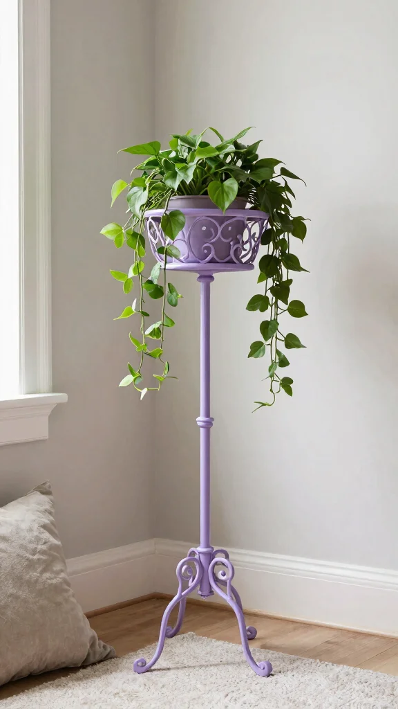 Fun fact: A fresh coat of spray paint on a metal filigree stand can transform a dull corner in under an hour. When you add trailing greens, your plant stand makeover pops, and the whole room feels brighter.