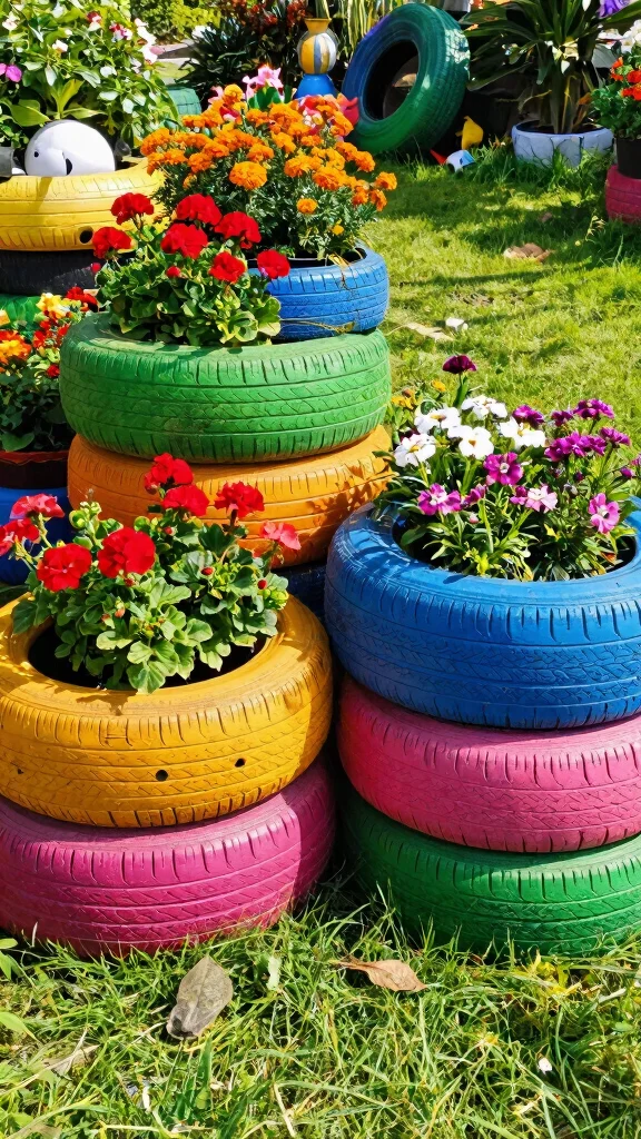 10. DIY Tire Planters