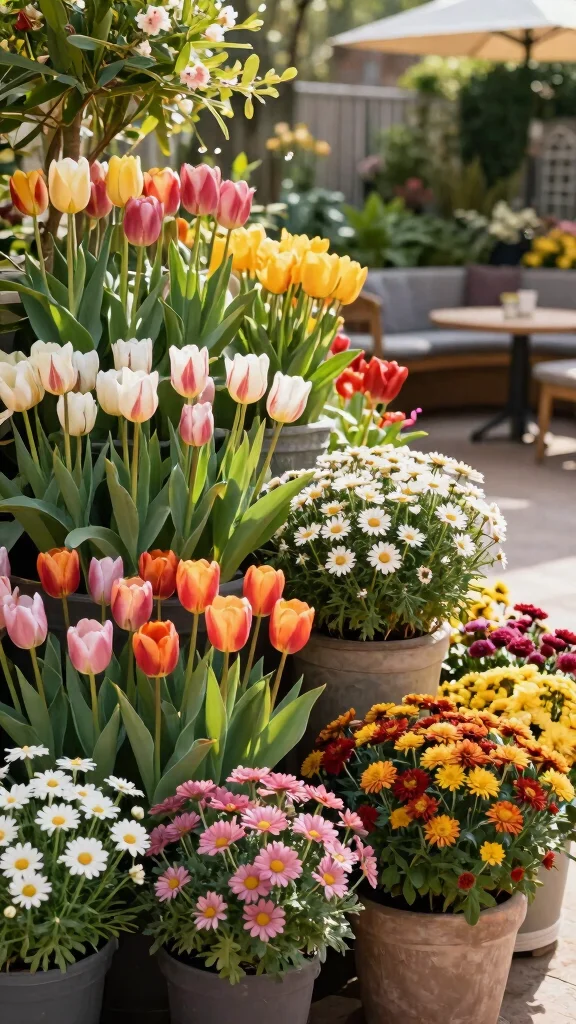 In spring, plant tulips and daffodils, transitioning to summer blooms like zinnias and daisies, then into fall with marigolds and chrysanthemums. This approach keeps your garden lively and showcases diverse plants throughout the year.