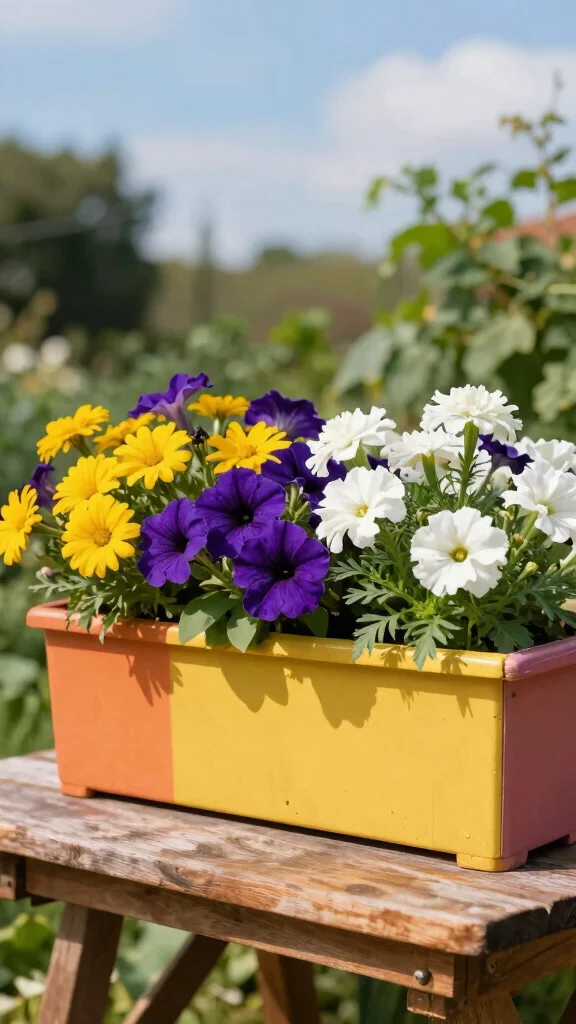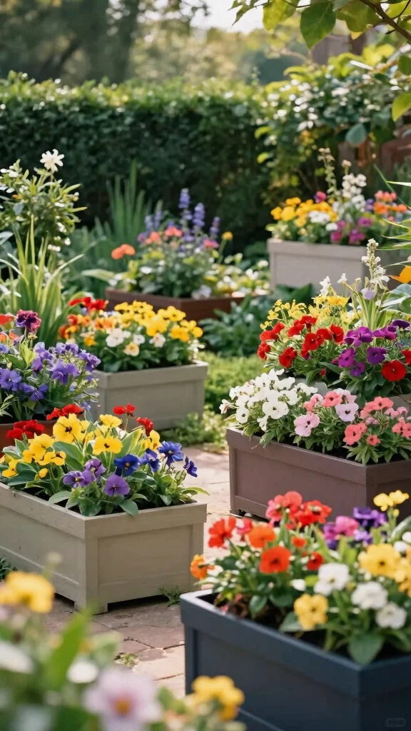 Color-Block Planter Boxes turn tiny spaces into bold statements. Mix vibrant yellows with purples and watch planter boxes flowers pop with life—no big yard required. Pro tip: group colors in blocks and you’ll get a cohesive, eye-catching display every season.