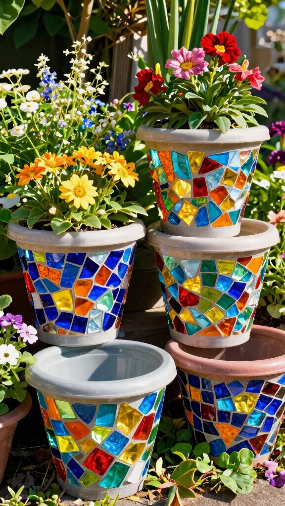 Transform your ordinary plastic pots into vibrant mosaic art pieces! By adhering colorful glass, tiles, or even shards of broken pottery, you can craft stunning designs that will brighten up any corner of your garden. This creative project not only enhances your outdoor space but also reflects your unique style and personality.