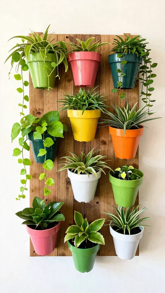 Begin by securing pots to a wooden board or old pallet using screws or brackets. You can either paint them in complementary colors or keep them rustic for a farmhouse vibe. Fill the pots with trailing or climbing plants for a stunning vertical display.