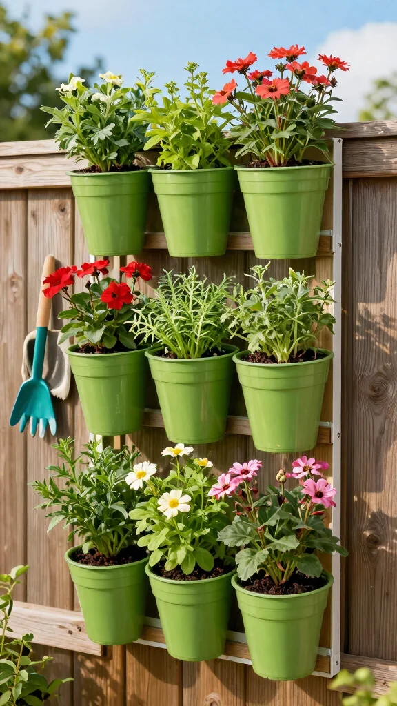 For a clever space-saving solution, consider creating upcycled wall planters from plastic flower pots! These eye-catching planters add greenery to vertical spaces, making them ideal for small gardens or balconies.