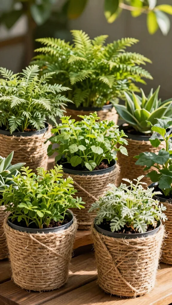 Add a touch of rustic charm to your plastic flower pots by wrapping them in twine! This simple yet sophisticated technique can introduce texture and warmth to your decor, perfect for a cozy aesthetic.
