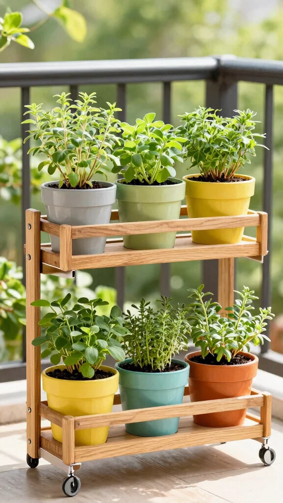 Start by selecting several medium-sized pots and painting them to match your decor. Attach them to a wooden board using brackets, creating a caddy that can be easily moved. Fill each pot with fresh herbs like basil, mint, and thyme for culinary convenience.