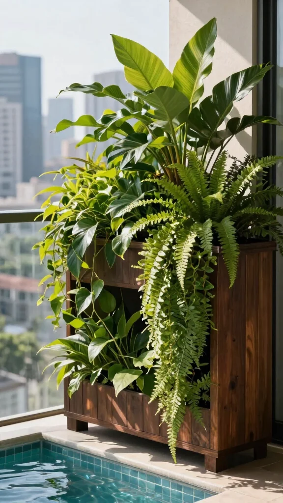 Fun fact: vertical garden planters can double greenery on a tiny balcony—saving up to 50% of floor space. For poolside planter ideas, a wall of pothos and string of pearls creates a lush, low-maintenance backdrop. Self-watering options simplify upkeep.
