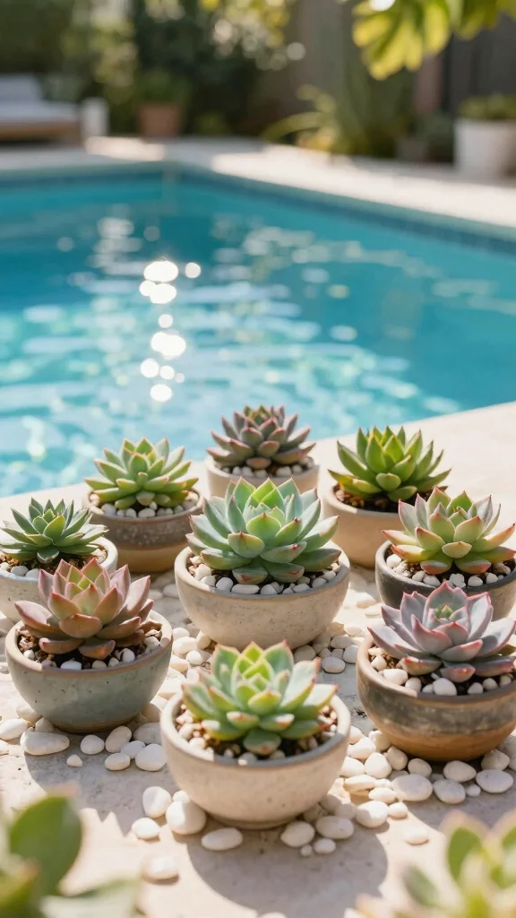 Use colorful pebbles and tiny pathways to enhance the enchanting feel. These gardens can be placed around your pool’s edge, offering delightful surprises for your guests.