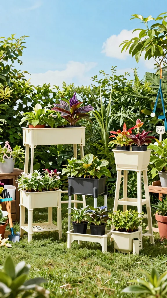 A multi-level PVC plant stand is an excellent choice for those who love to showcase a variety of plants. This design allows you to create a stunning display featuring plants of different heights and types, making your garden visually appealing. Picture a vibrant mix of tall flowers and low-growing herbs, all thriving together in harmony.