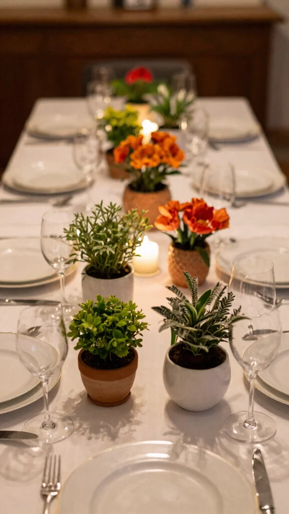 Consider seasonal flowers, colorful succulents, or even miniature fruit plants to add a unique touch. This not only beautifies your table but also sparks engaging conversations during meals.