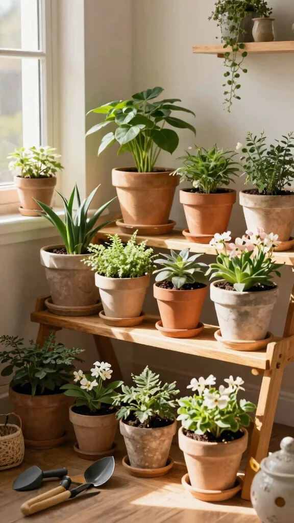 Make sure to secure the pots firmly to avoid accidents and choose plants that share light requirements for optimal growth. This vertical garden not only saves floor space but also serves as a unique focal point in any room.