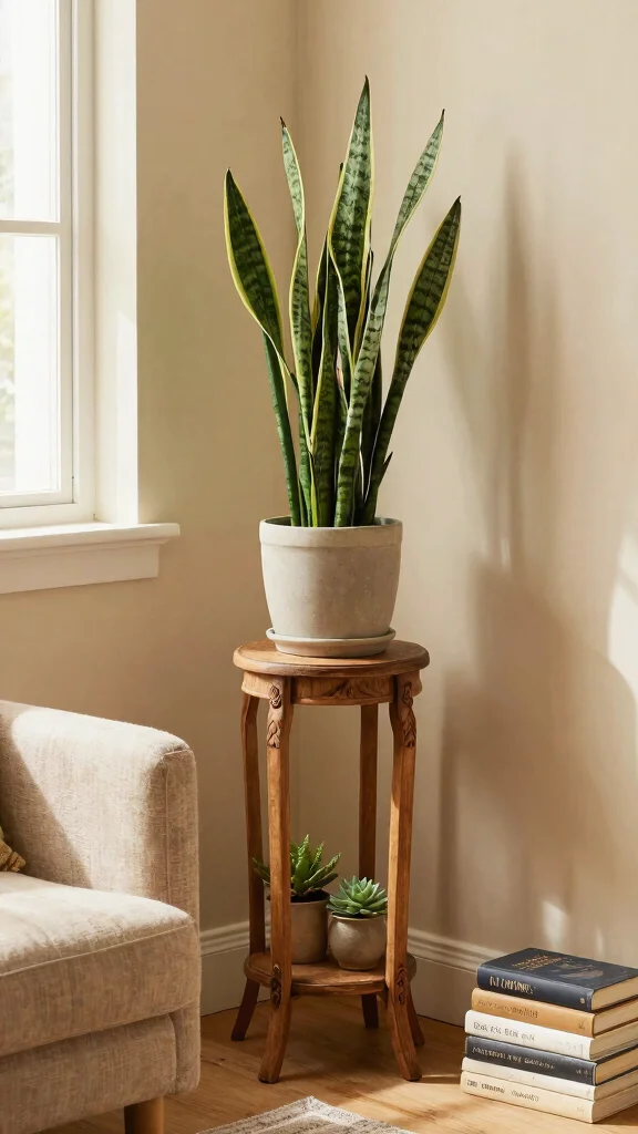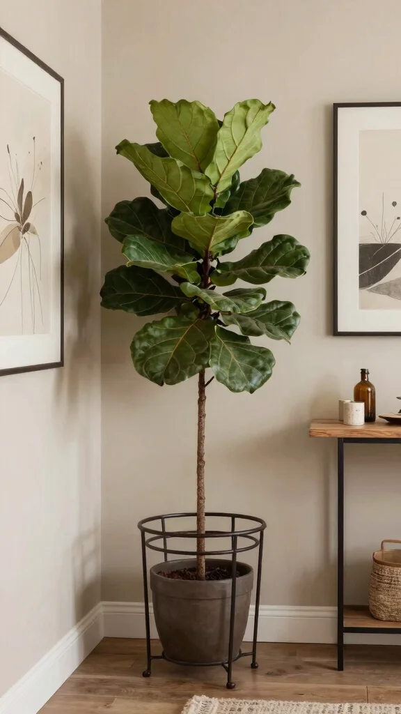 Fun fact: A single elegant plant stand can add up to 2 extra feet of visual height in a compact living room. Choose wrought iron or brass to spotlight tall fiddle leaf figs and snake plants—small spaces feel instantly bigger.