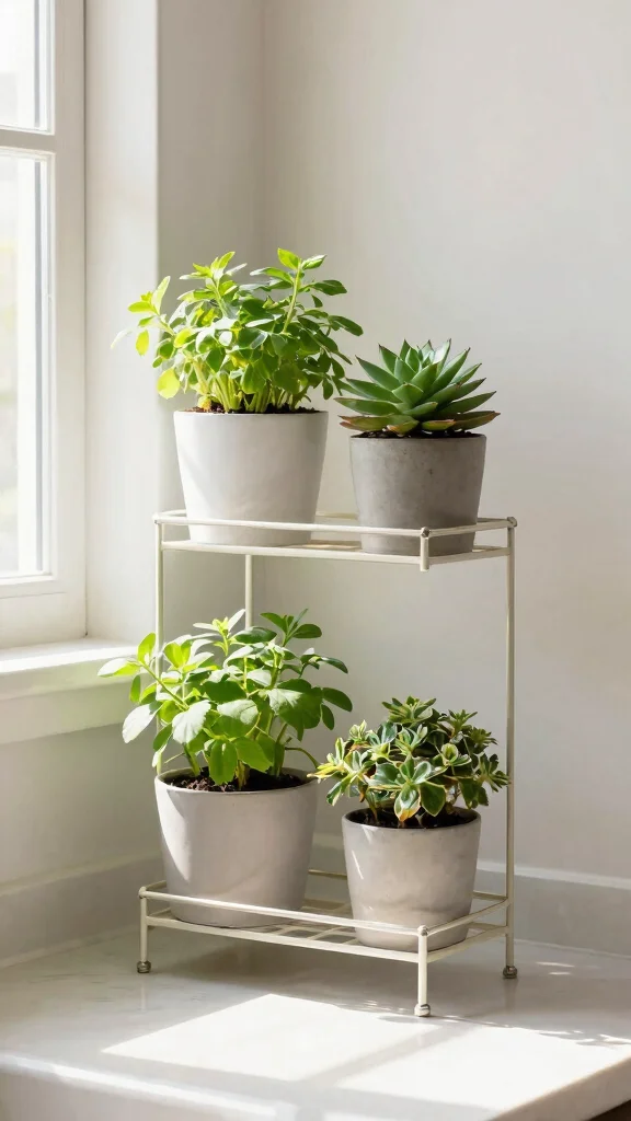 Tiered plant stands act as a delightful multi-level display for your greenery, adding layers of visual interest and charm to any space. This design approach allows smaller plants to perch atop larger ones, creating a beautiful cascade of foliage that draws the eye and invites exploration. Materials like reclaimed wood or modern metals can be used to match your decor style, making these stands both functional and fashionable.