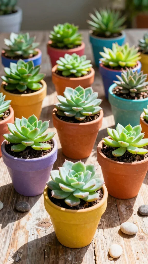 This approach not only adds a cheerful vibe to your space but also highlights the natural beauty of your succulents through texture and color.
