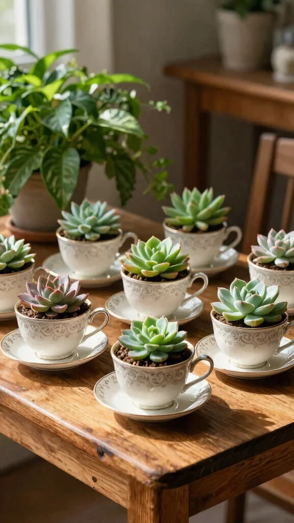 To get started, simply fill each teacup with potting soil, ensuring there’s drainage at the bottom. Opt for smaller succulents like Echeveria or Haworthia that will flourish in these cozy settings. A sprinkle of pebbles on top can add a polished final touch.